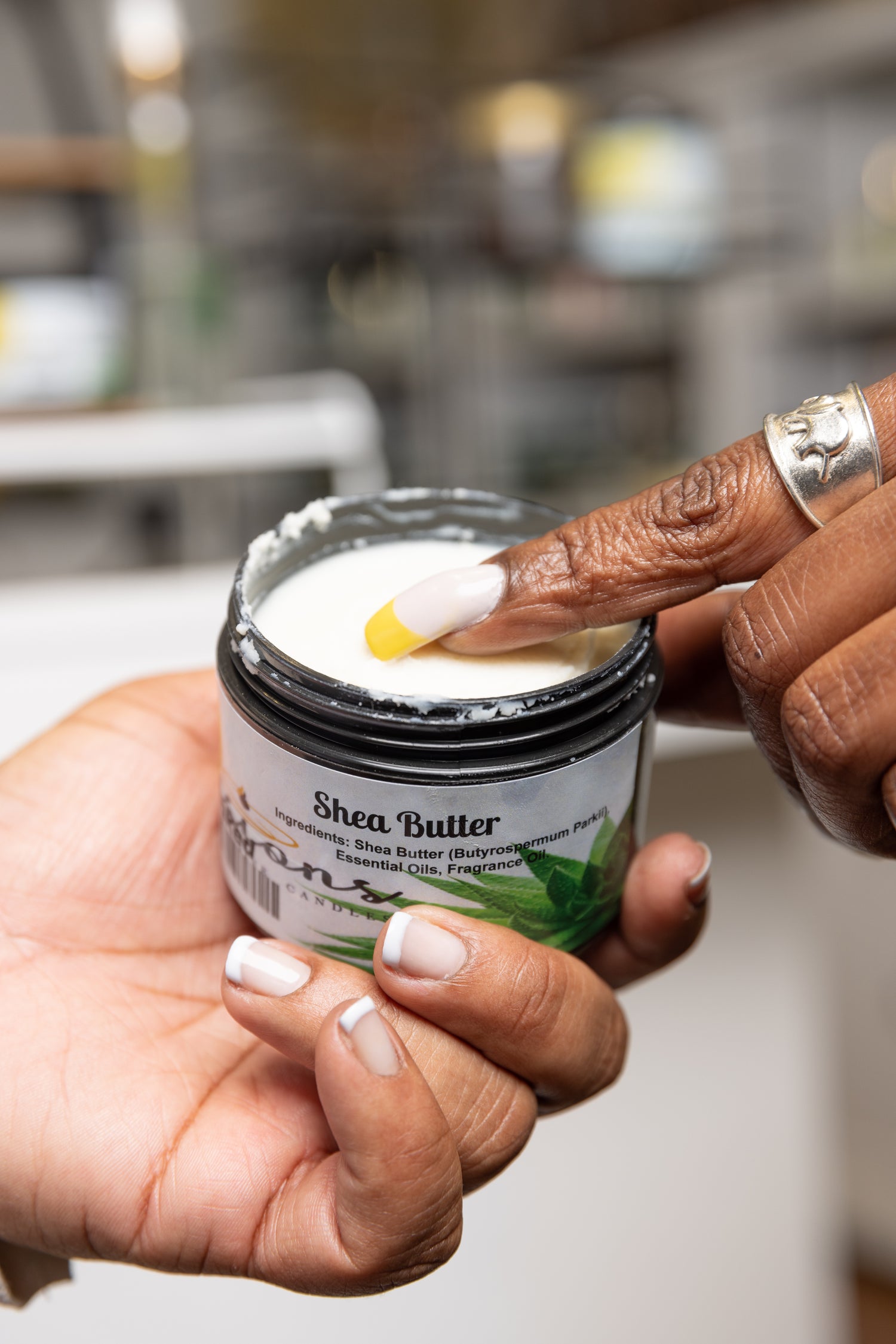 Our candles and shea butter are hand-poured in small batches with essential and fragrance oils.